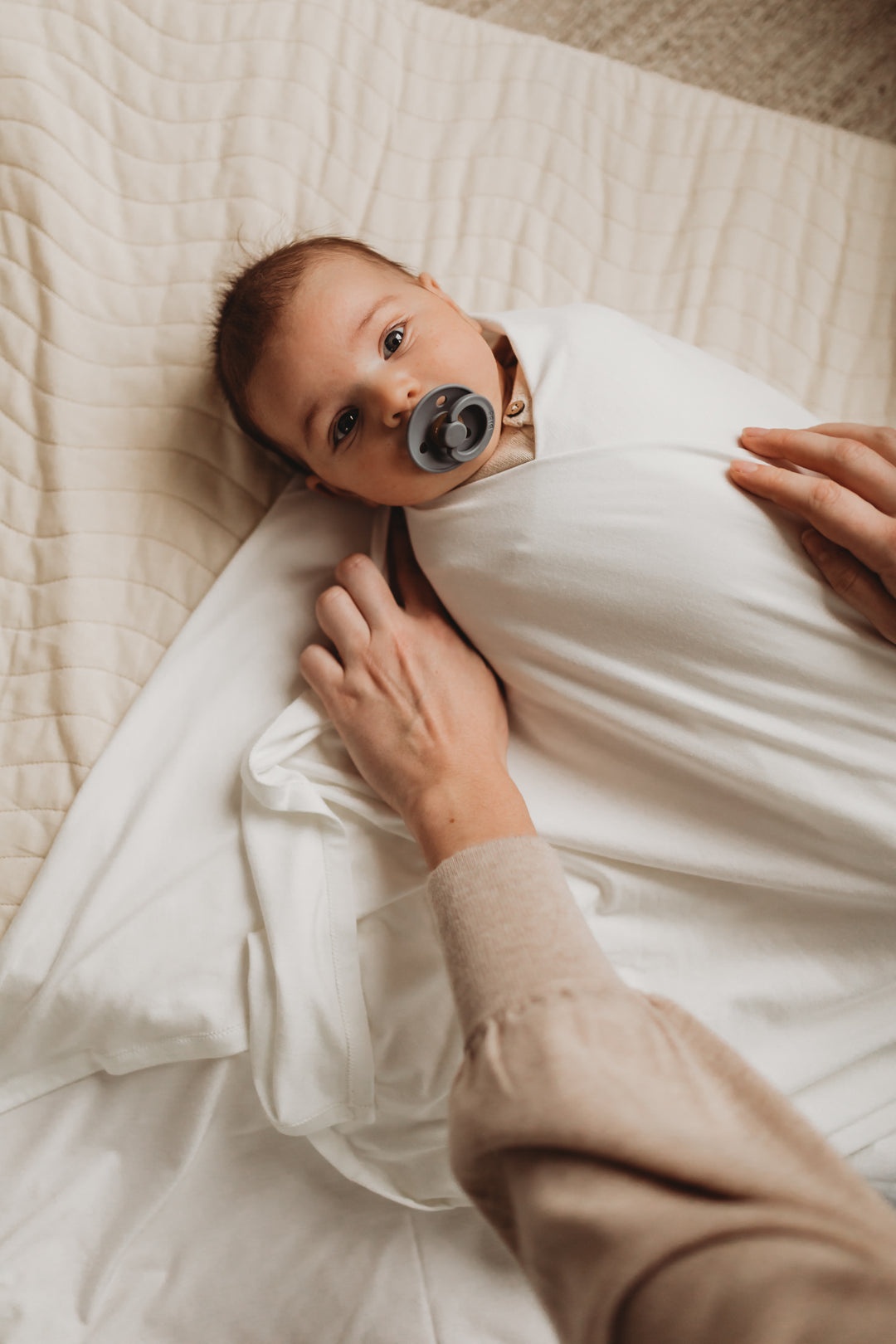De overgang van de baarmoeder naar de buitenwereld is voor jouw kindje best overweldigend. Inbakeren is een fijn hulpmiddel om een veilig, geboren gevoel te bieden tijdens het doen van slaapjes.